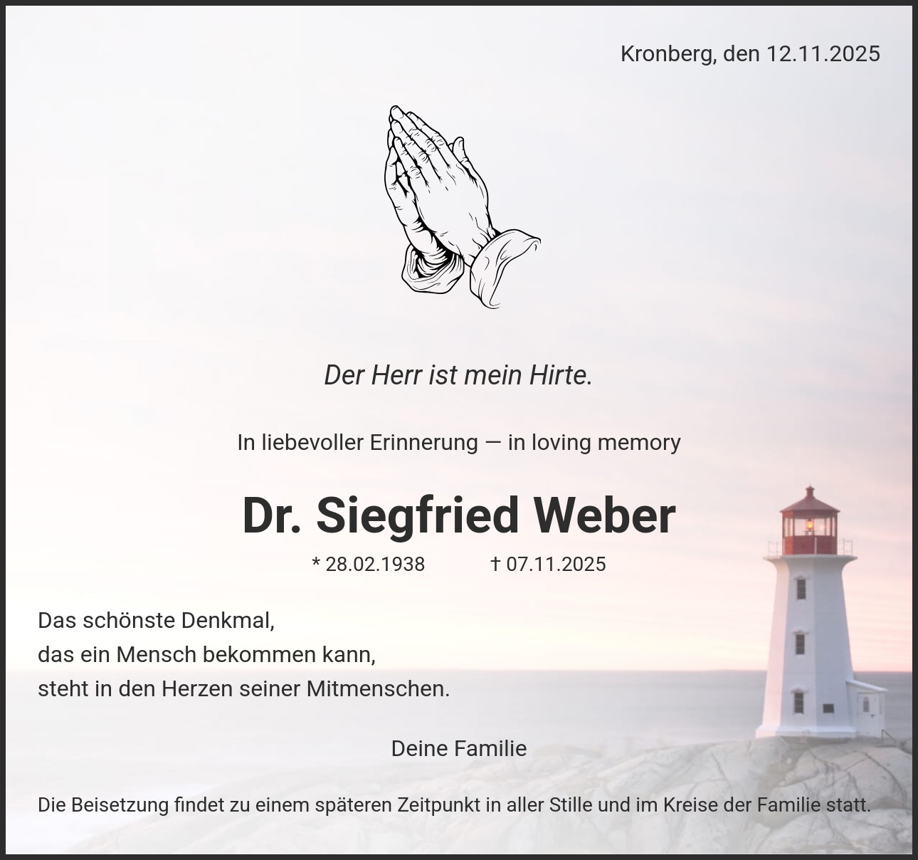 Die Beisetzung findet zu einem späteren Zeitpunkt in aller Stille und im Kreise der Familie statt.