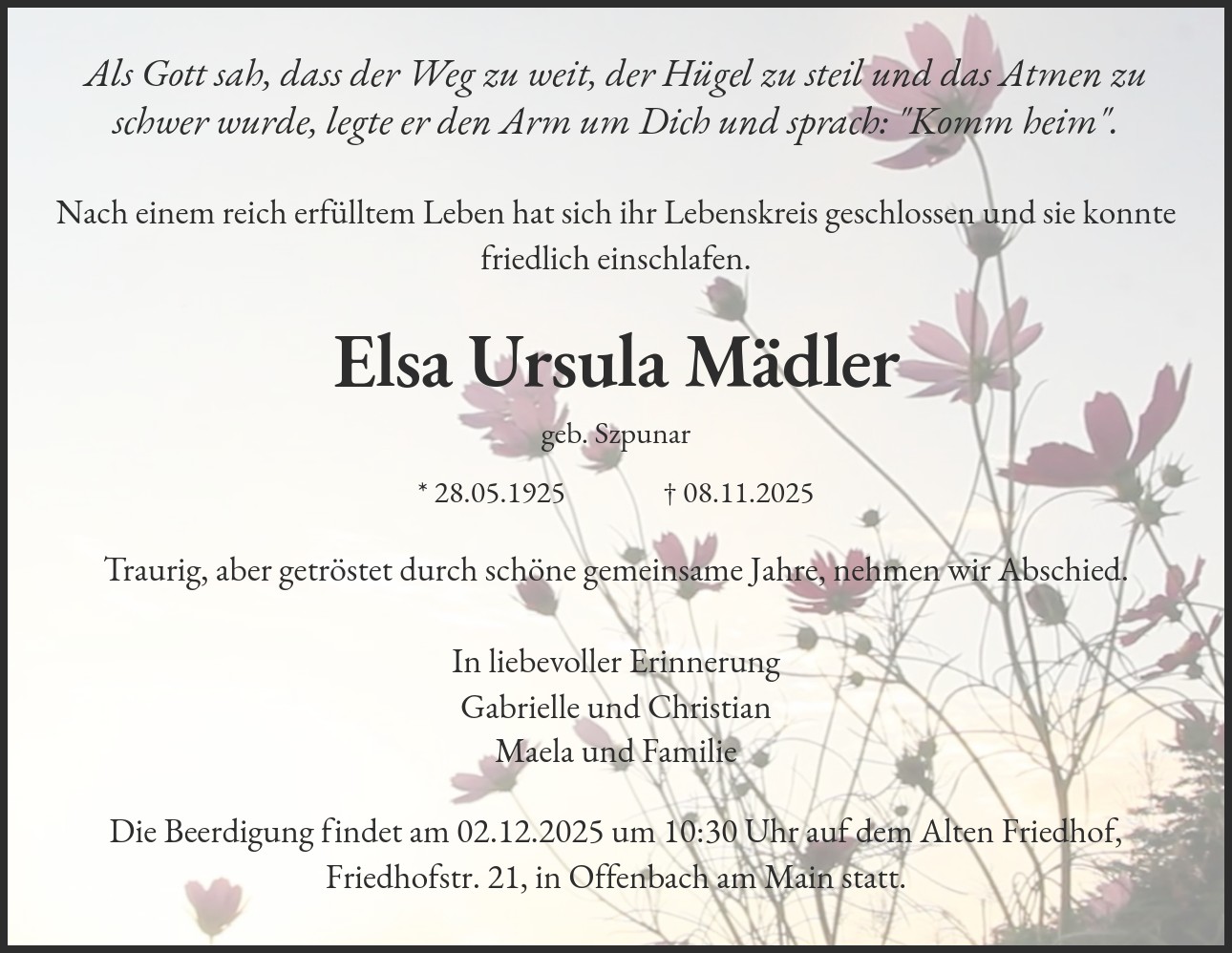 Die Beerdigung findet am 02.12.2025 um 10:30 Uhr auf dem Alten Friedhof, Friedhofstr. 21, in Offenbach am Main statt.
