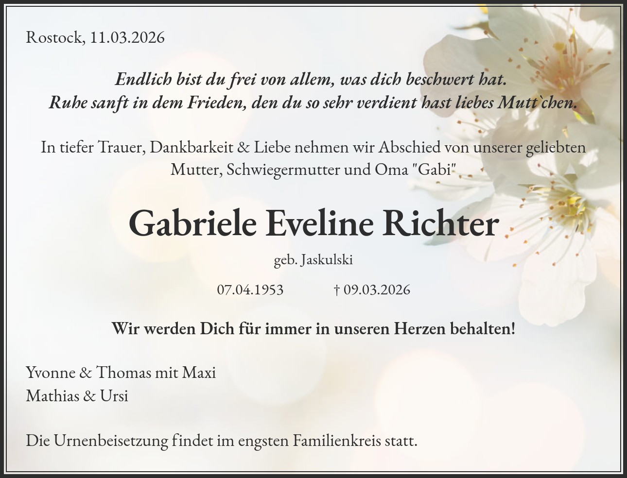 07.04.1953 † 09.03.2026