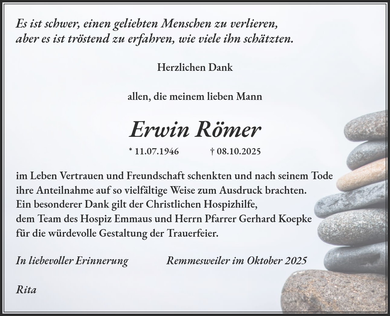im Leben Vertrauen und Freundschaft schenkten und nach seinem Tode ihre Anteilnahme auf so vielfältige Weise zum Ausdruck brachten. Ein besonderer Dank gilt der Christlichen Hospizhilfe, dem Team des Hospiz Emmaus und Herrn Pfarrer Gerhard Koepke für die würdevolle Gestaltung der Trauerfeier.