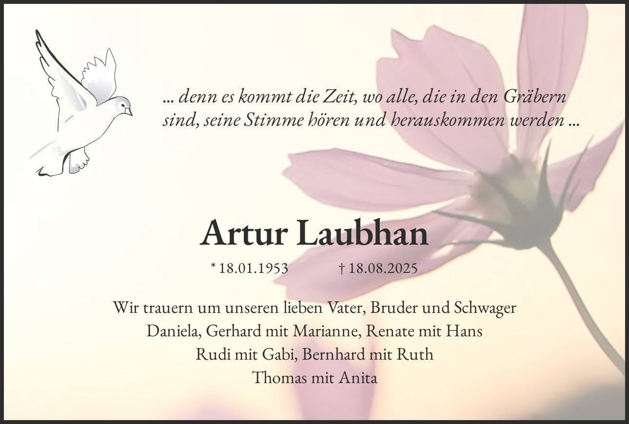 mit großer Betroffenheit habe ich von Artur's Tod erfahren. Wir waren Arbeitskollegen bei Mercedes-Schreiner und sind bis zuletzt verbunden geblieben. Er war für mich ein sehr guter Freund und immer für mich da. Mir fehlen die vielen langen Telefonate. Ich vermisse ihn sehr.
