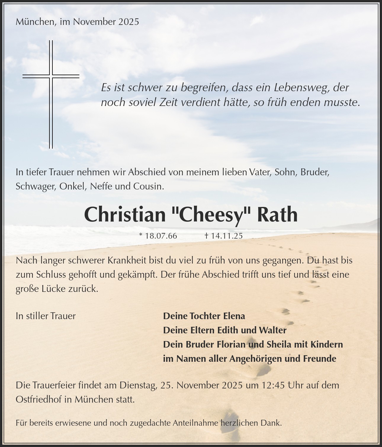 In stillem Gedenken an Christian spreche ich der Familie Rath, Elena, Dea, Katja und allen Angehörigen mein tiefstes Mitgefühl aus.
