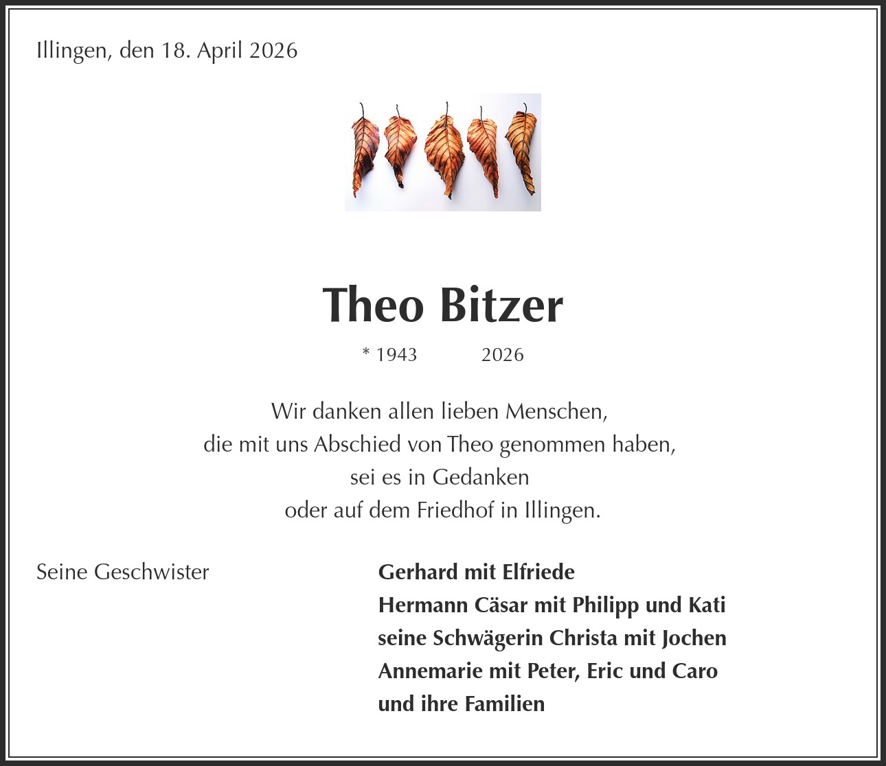 Wir danken allen lieben Menschen, die mit uns Abschied von Theo genommen haben, sei es in Gedanken oder auf dem Friedhof in Illingen.