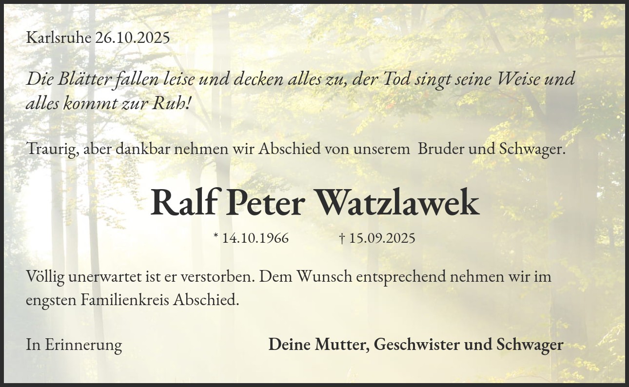 Völlig unerwartet ist er verstorben. Dem Wunsch entsprechend nehmen wir im engsten Familienkreis Abschied.